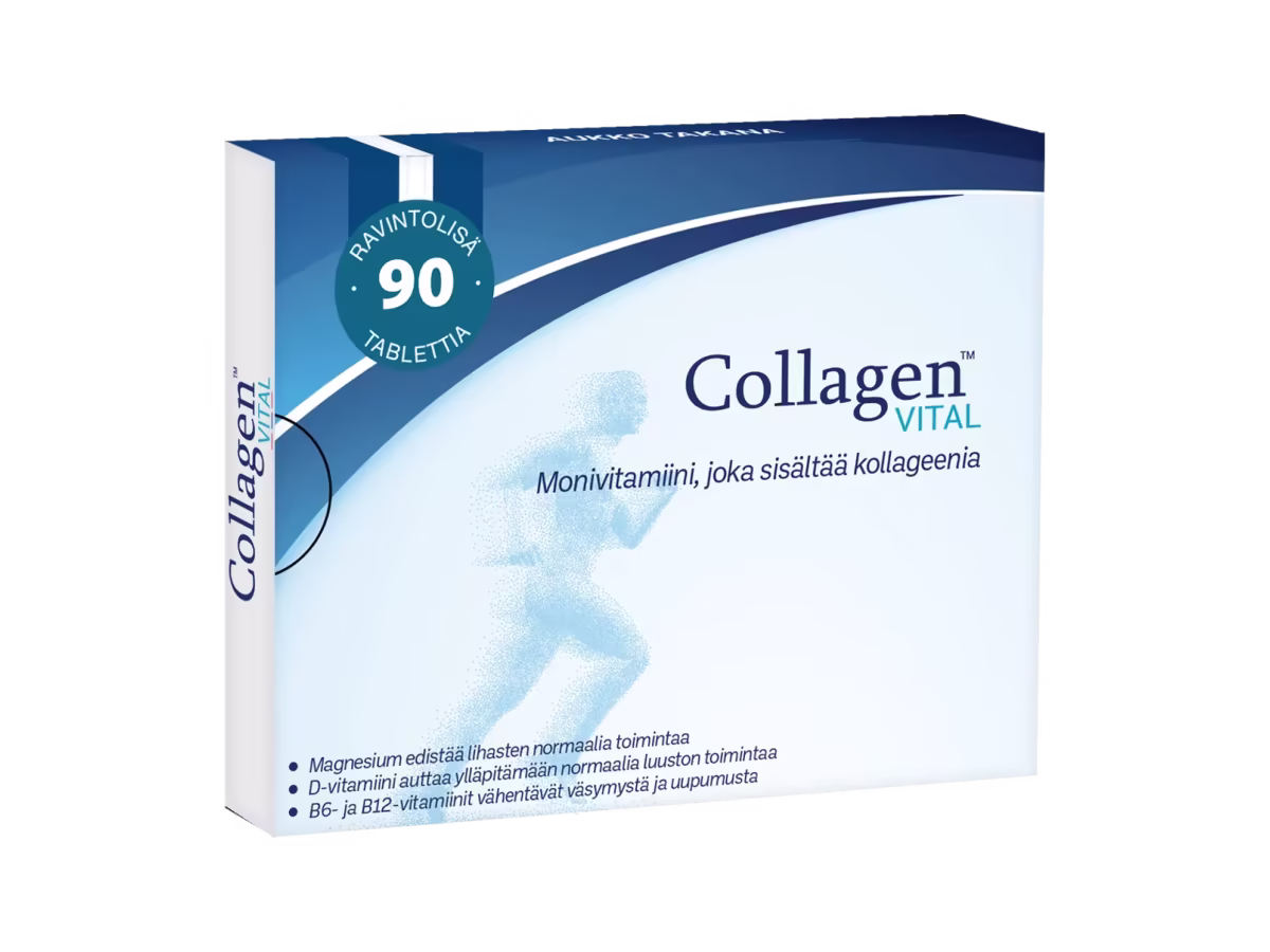 Kokeile tuotetta Collagen Vital 30 päivää. Sisältää magnesiumia, mangaania, B6-, B12-, C- ja D-vitamiinia.